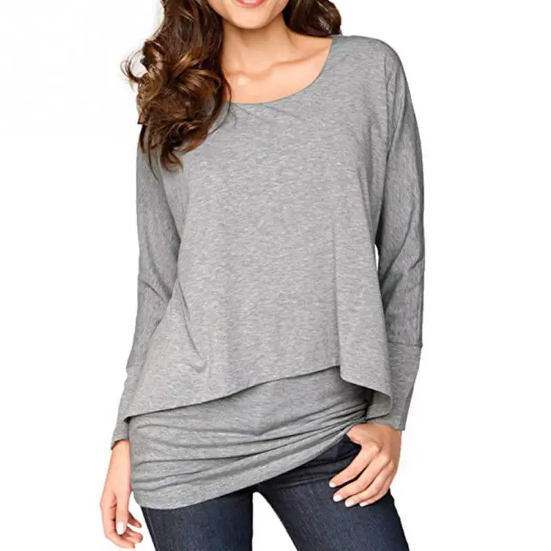Женская Асимметричная Туника весна круглый вырез свободные женские топы длинный рукав вечерние Осенние повседневные блузки