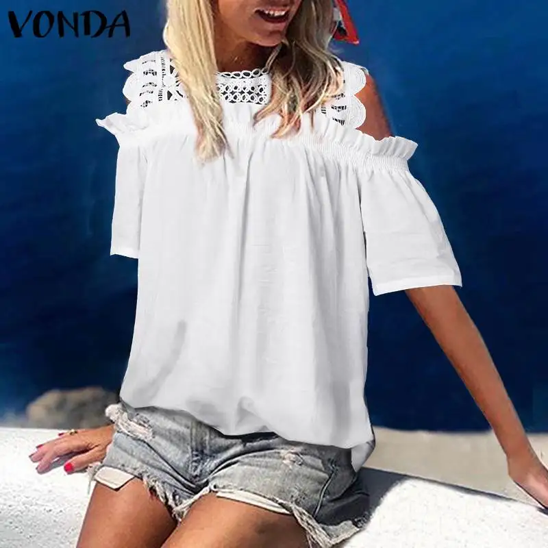 Женские блузки и рубашки VONDA, повседневные однотонные Блузы с круглым вырезом и рукавом до локтя, большие размеры 5XL, лето 2020