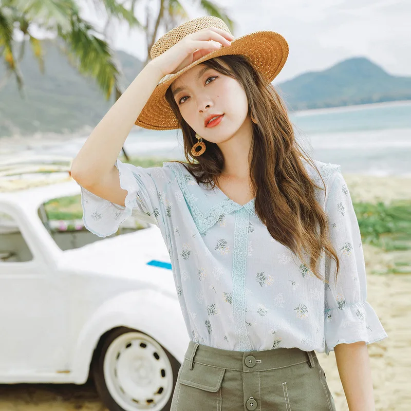 Инман 2019 осень Новое поступление 100% хлопок вино Ретро агаровое кружево отложной воротник литературный Милый молодой девушки женская блузк...