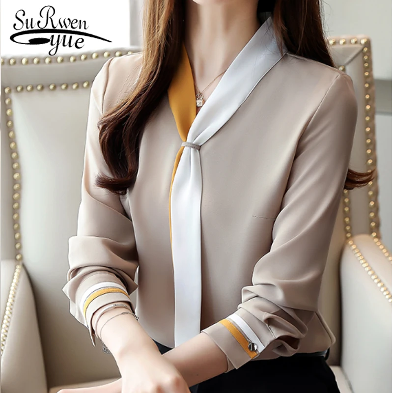 Женские топы и блузки шифоновая блузка рубашка с длинным рукавом Женские рубашки Мода весна 2019 плюс размер офисная блузка женская 1779 50