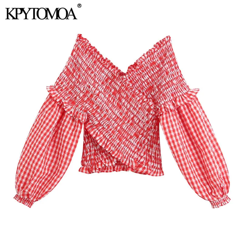 Женская блузка KPYTOMOA, винтажная укороченная блузка с v-образным вырезом и длинным рукавом, модель 2020