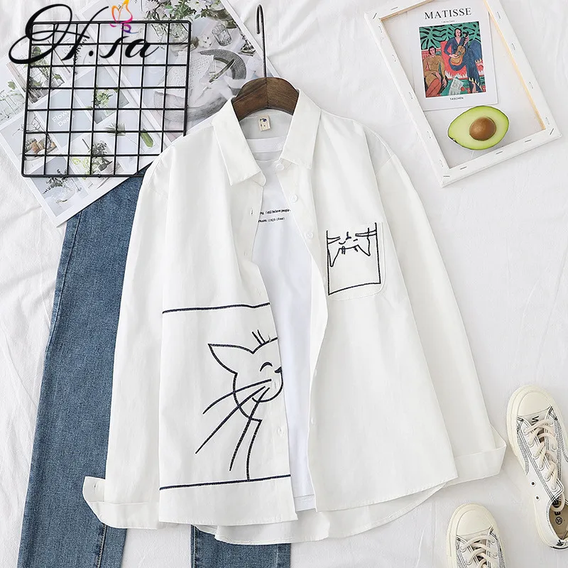 Женские блузки с карманами H. SA, белые блузки и рубашки с длинным рукавом, повседневные блузки больших размеров