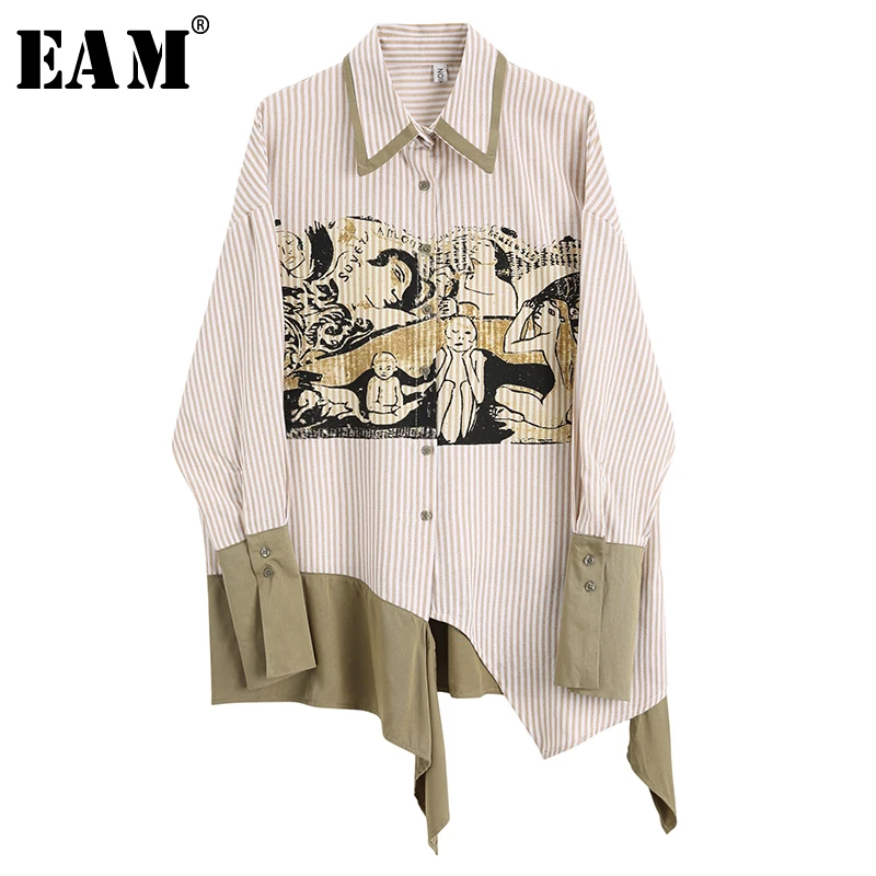 [EAM] 2019 новая весенне-летняя рубашка мужская блузка с длинными рукавами и принтом с асимметричной пуговицей Модная рубашка JX980
