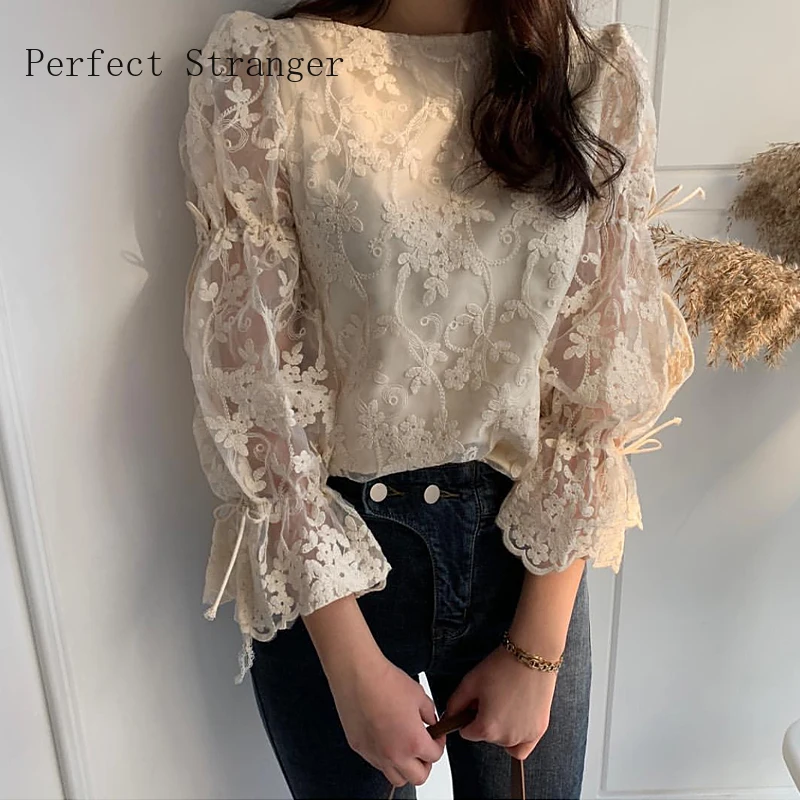 Женская сексуальная сетчатая рубашка с пышными рукавами, женские модные свободные тонкие шифоновые топы, женские блузки, рубашки для работ...