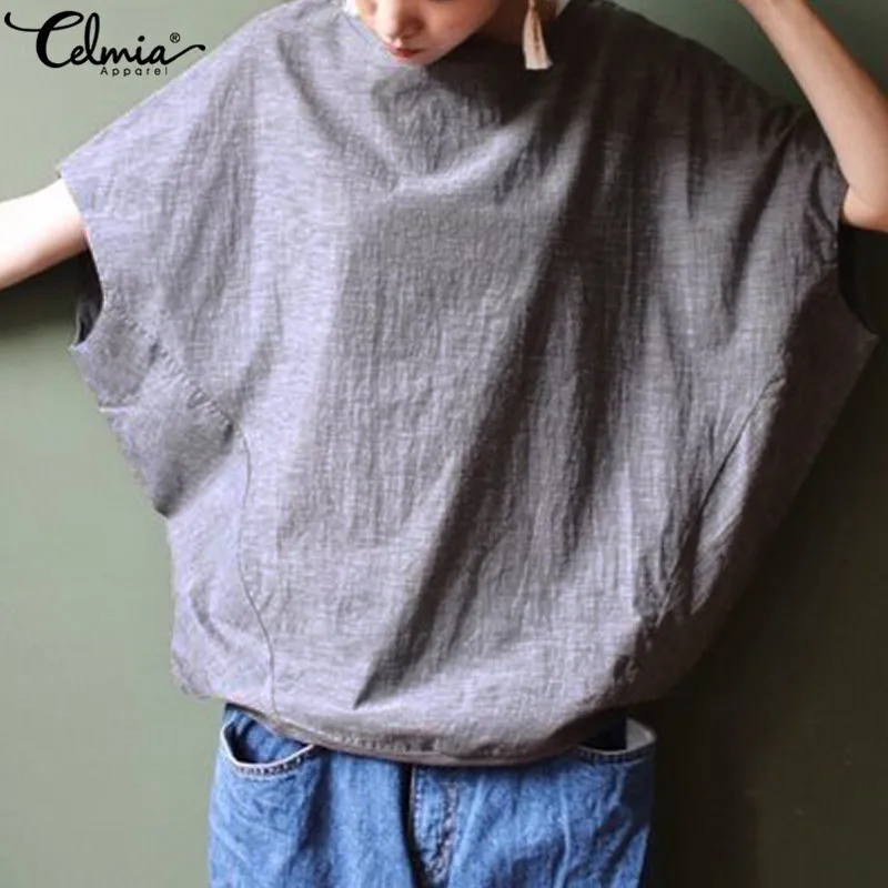 Cellia/2019 летние женские льняные блузки в стиле ретро с коротким рукавом «летучая мышь», женские рубашки, однотонные повседневные свободные бл...