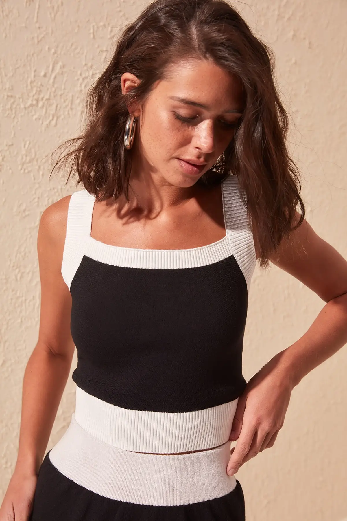 Укороченный трикотажный костюм с цветными блоками Bluz TWOSS20BZ0781