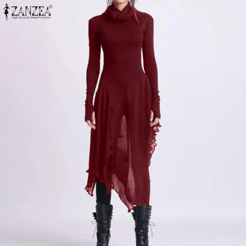Весна 2020, однотонная водолазка, асимметричная блузка, ZANZEA, повседневные длинные рубашки, Vestidos, женский тонкий пуловер с длинным рукавом, туника, топы, Халат