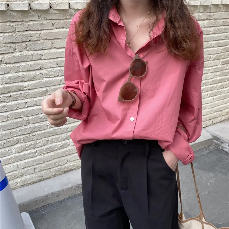 HziriP Популярные базовые Короткие повседневные милые модные шикарные универсальные минималистичные 2020 большие элегантные Однотонные блузки OL свободные женские рубашки