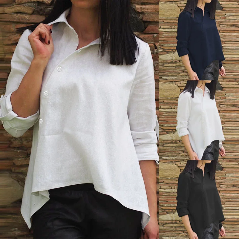Женская Офисная Туника ZANZEA, модная однотонная хлопковая рубашка с асимметричными пуговицами, модель 2020, большие размеры