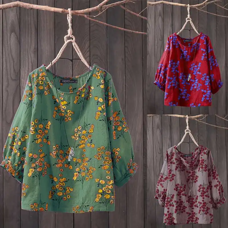 ZANZEA, 2019 размера плюс, Женские топы и блузки, повседневные, для работы, офиса, Blusas, для девушек, Ретро стиль, Цветочная туника, топы для женщин, Pritned рубашка 5XL