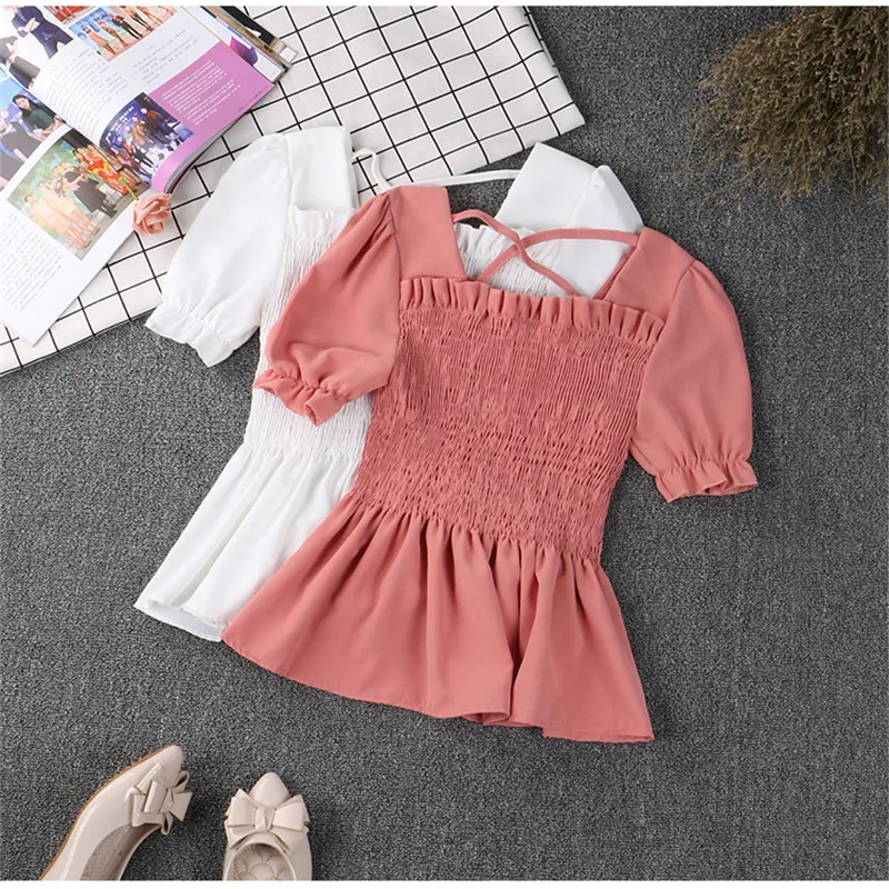 SAM'S TREE/белые однотонные повседневные шифоновые женские рубашки с воротником Питер Пэн, Новинка лета 2020, винтажный буф с рукавами, корейские милые топы для девочек