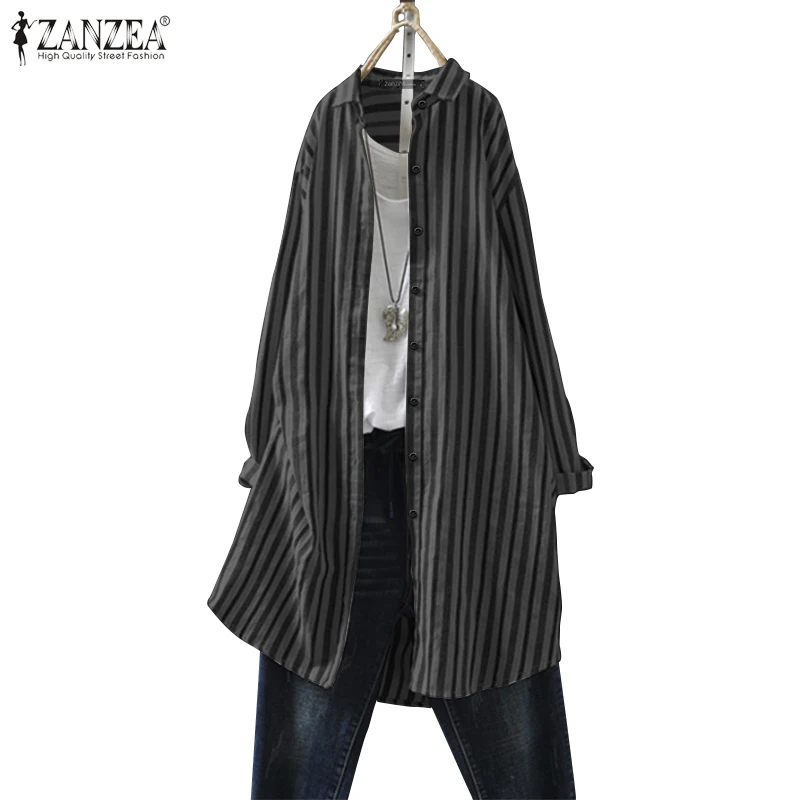 Женская блузка ZANZEA 2019 Осенняя винтажная полосатая хлопковая льняная туника рубашка с длинным рукавом Офисная женская блуза размера плюс