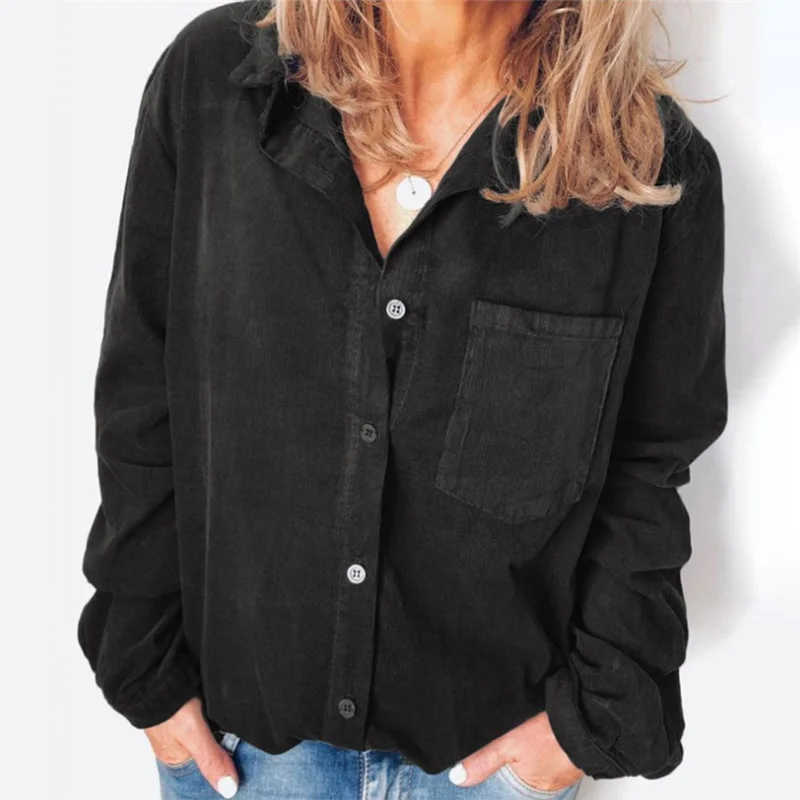 Женская блузка, Вельветовая рубашка большого размера, топ с отложным воротником, однобортная женская рубашка, пальто с длинным рукавом и карманом, свободные блузки