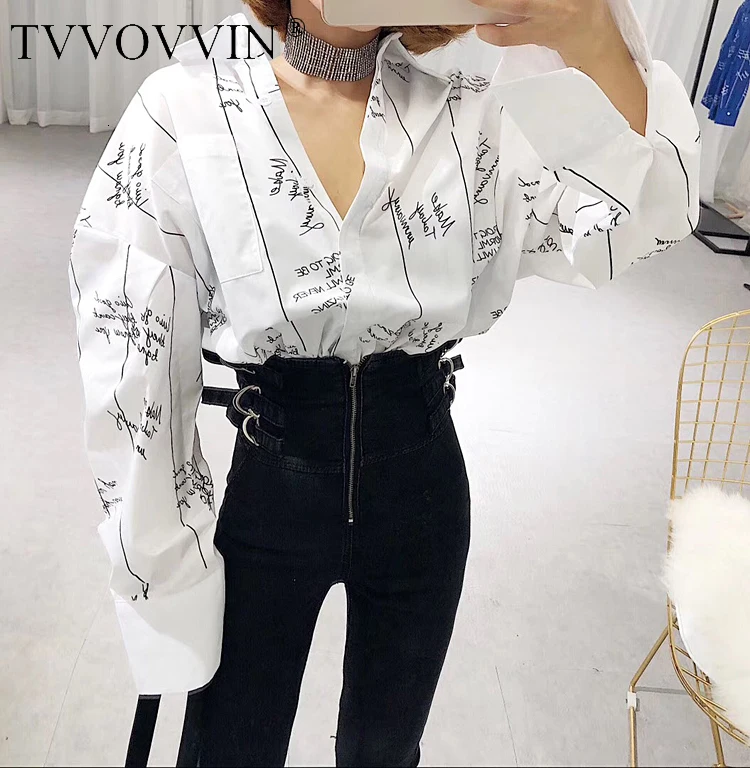 Для женщин блузка 2019 весенние хлопковые Белые блузы универсальная свободная, с принтом в виде надписи кардиган рубашка Длинные рукава руба...