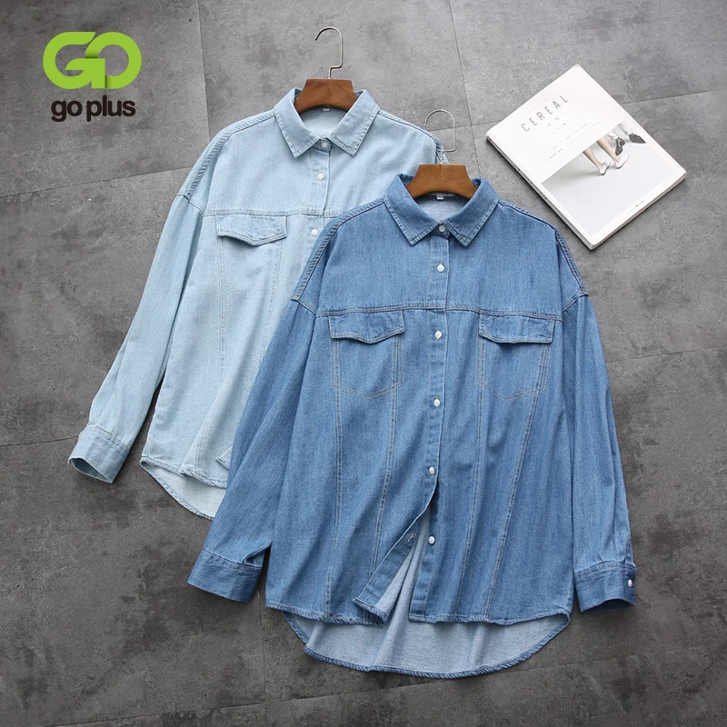 GOPLUS женская рубашка с отложным воротником, Джинсовая блузка, уличная одежда, синие женские топы и блузки, Blusas Mujer De Moda 2020 Haut Femme