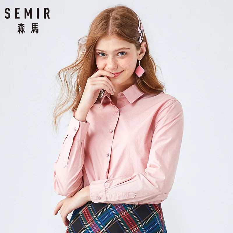 SEMIR, рубашка с длинным рукавом для женщин, молодых, осень 2019, новинка, простая, однотонная, хлопковая, с длинным рукавом, женская блузка, для ко...