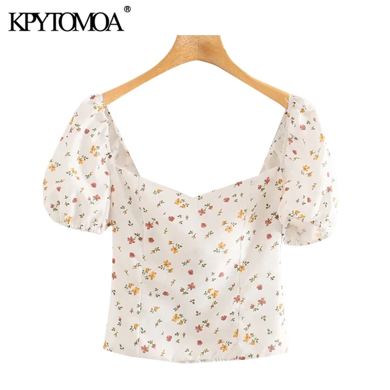 KPYTOMOA, Женская мода 2020, милая, стрейчевая, тонкая, с оборками, укороченные блузки, винтажные, с квадратным воротником, с пышными рукавами, женские рубашки, шикарные топы