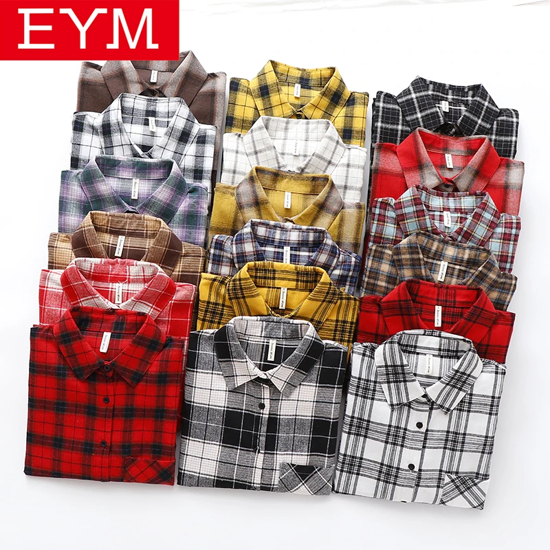 Новинка осени 2019, брендовые свободные женские блузки, блуза с длинным рукавом, хлопок, большой размер, клетчатая рубашка, повседневный стиль...