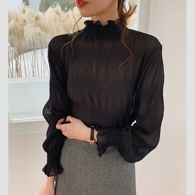 Корейская шифоновая блузка, новые женские Топы с длинным рукавом, водолазка, рабочая одежда, рубашки, элегантные женские повседневные блузки, женские блузки размера плюс