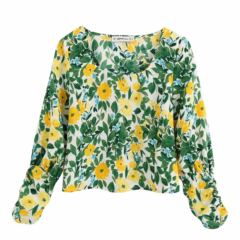 Новинка 2020 Женская милая Повседневная Блузка с цветочным принтом, Женская шикарная льняная рубашка с квадратным воротником, плиссированные рукава, женские топы LS6523