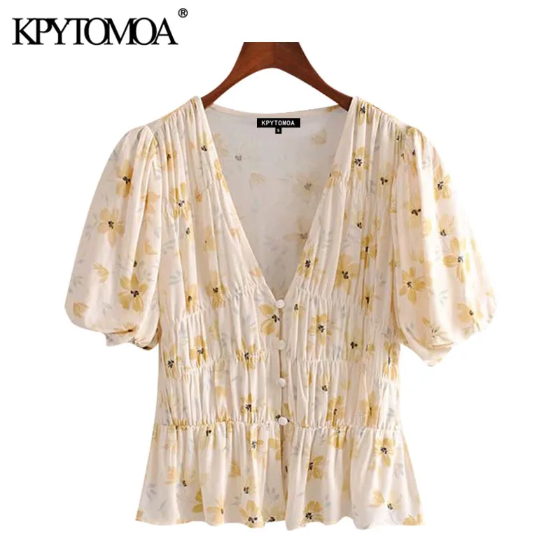 Женская блузка с цветочным принтом KPYTOMOA, винтажный буф с рукавами на пуговицах, шикарные блузки, 2020