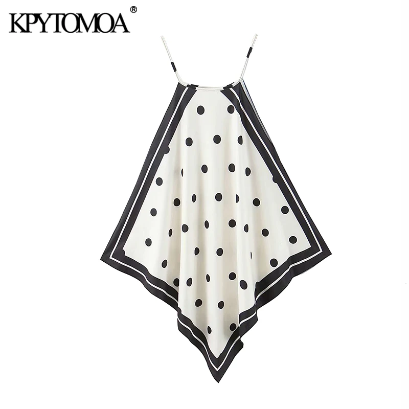 Женская Асимметричная блузка в горошек KPYTOMOA, винтажная блузка без рукавов с завязками сбоку, шикарные топы, 2020