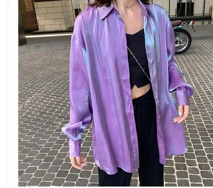 2019 Vinatge шикарные женские градиентные рубашки женские свободные блестящие шикарные рубашки корейские женские градиентные розовые красные б...