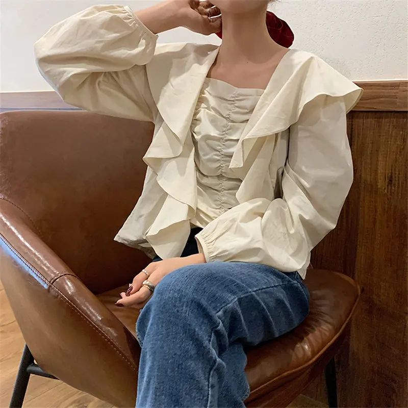 Осенняя белая рубашка, летняя женская Повседневная Свободная блузка с длинным рукавом для девочек, большие размеры, женские блузки, топы, свободные женские блузки