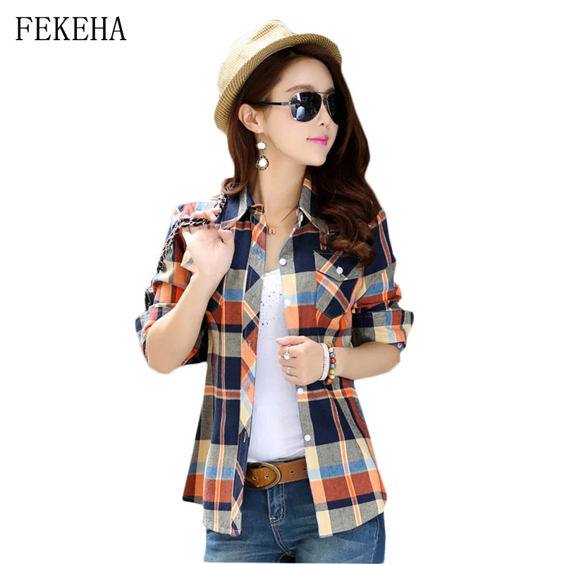 Дамы топы корректирующие 2019 Весна новое поступление рубашка в клетку для женщин Повседневное 100% хлопок с длинным рукавом блузки для м
