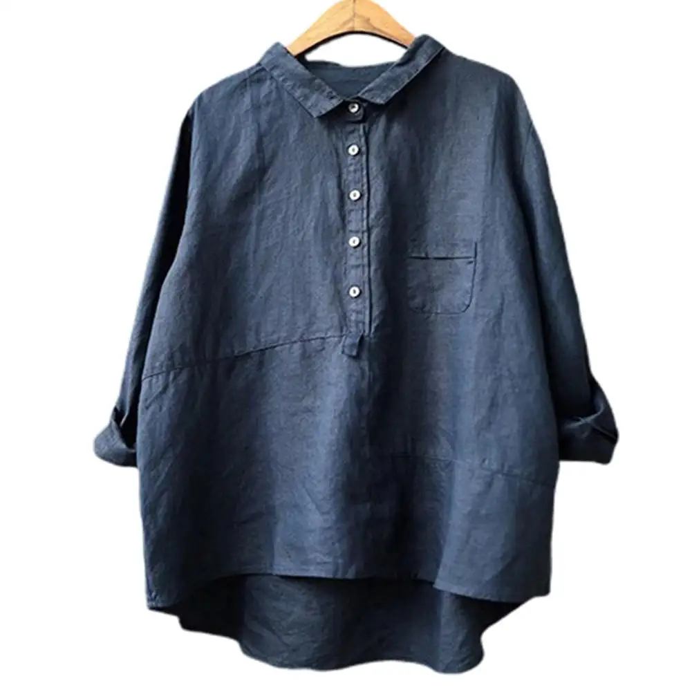MISSKY женская рубашка с длинным рукавом, хлопковая льняная рубашка, весна-лето, свободная блузка с отворотом, однотонные женские топы, Новинка