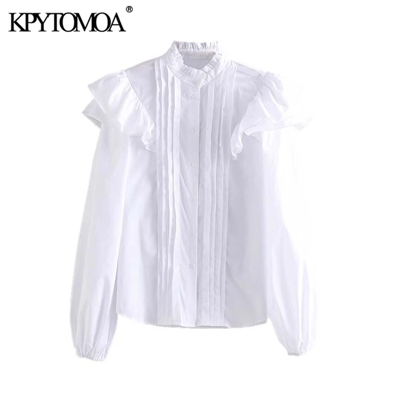 Винтажная женская блузка cellumia 2020, модные женские рубашки с рукавом-фонариком, повседневные свободные топы с пуговицами и оборками, топы с кр...