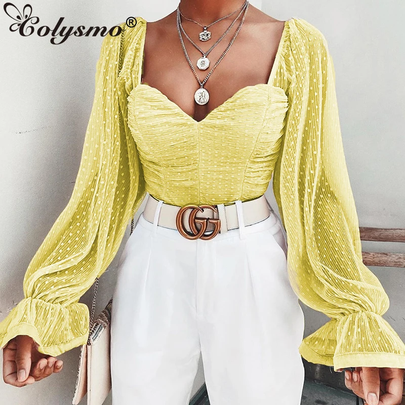 Colysmo, винтажная женская блузка с длинным пышным рукавом, Женские топы и блузки, блузы с квадратным воротником, одежда в горошек размера плюс 2020