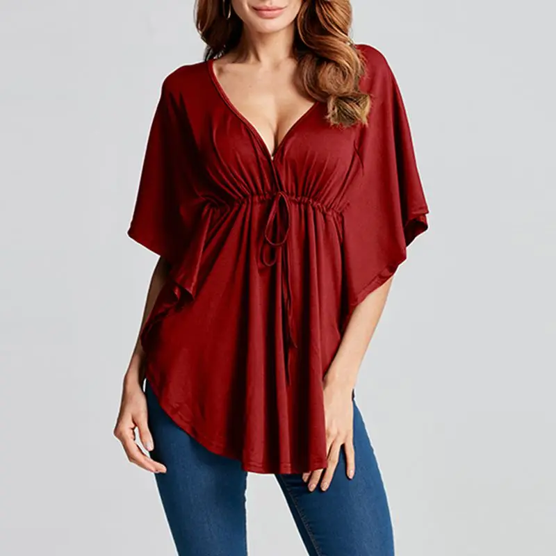 Сексуальные топы с глубоким v-образным вырезом, женские летние повседневные рубашки с оборками, женские Асимметричные блузы размера плюс, Blusas Mujer 7