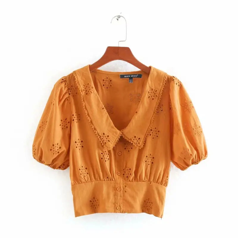 Новинка 2020, женские повседневные блузки с вышивкой и отложным воротником, женские рубашки с пышными рукавами, топы для отдыха LS6544