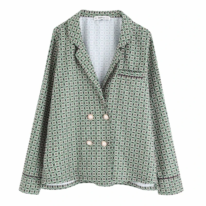 Новинка, Женская винтажная Повседневная Свободная блузка-кимоно с геометрическим принтом и жемчужными пуговицами, женские шикарные блузы, ...