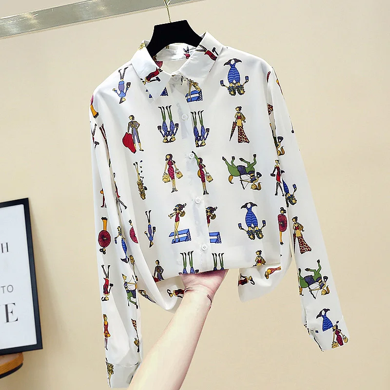 Весенне-осенняя Женская мультяшная рубашка, корейская модная мультяшная рубашка с длинными рукавами для девочек, Женская Повседневная рубашка, женская блузка GD267