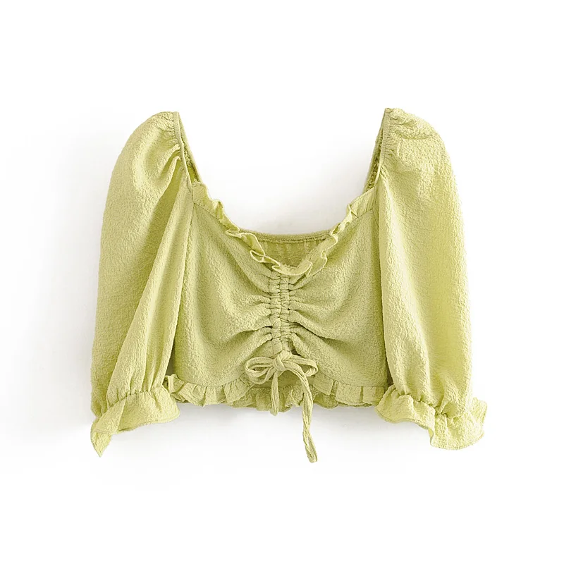 2019 женская повседневная короткая блуза в стиле корта с квадратным воротником, женская рубашка в стиле ретро с пышными рукавами, эластичная ...