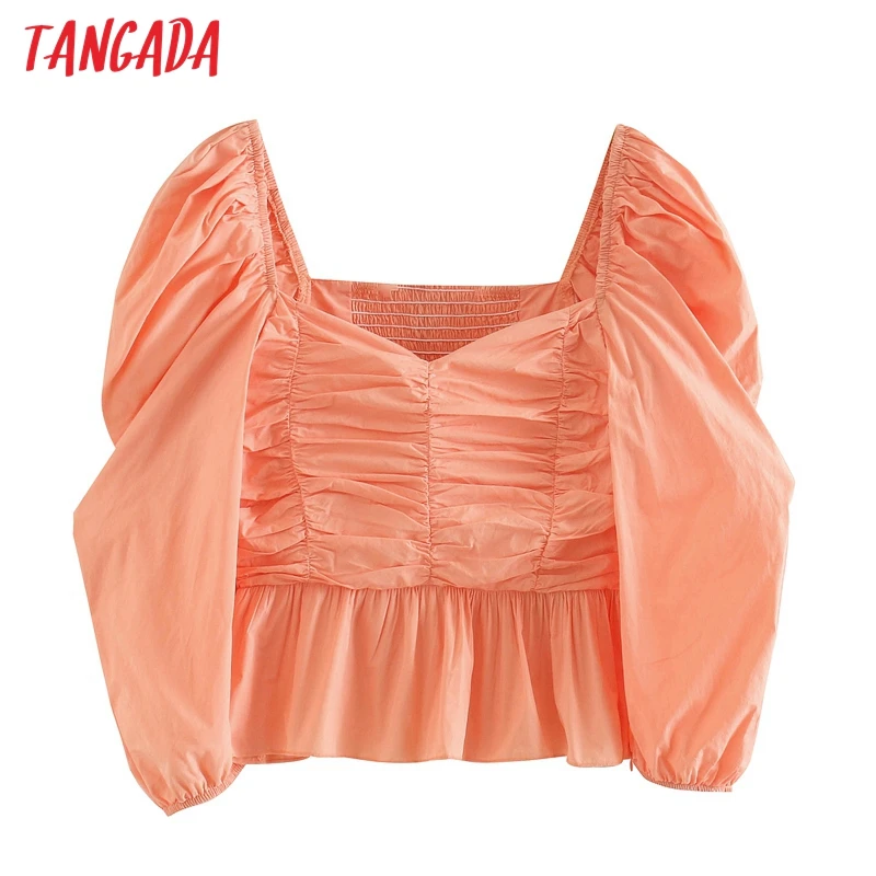 Женская винтажная рубашка Tangada, оранжевая Укороченная рубашка с длинным рукавом, новинка 2020, шикарная Женская Облегающая рубашка, топы 5Z190