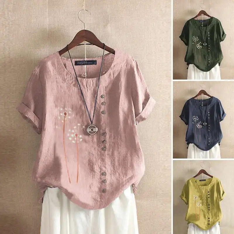 Женская винтажная блузка с принтом ZANZEA, Повседневная летняя блузка с коротким рукавом, цветочный принт, большие размеры, туника, 2020