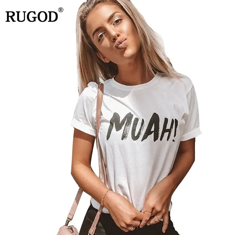 RUGOD 2018 Новые забавные Муа Письмо печати хлопковая рубашка для женщин Лето 2018 г. проката рукавом белая блузка Harajuku повседневное Топы