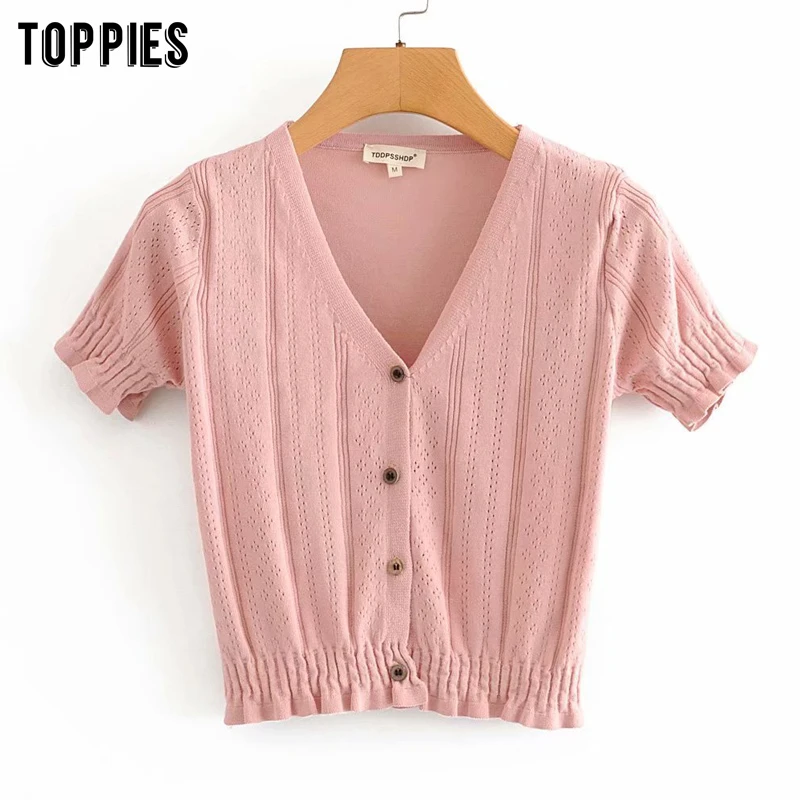 Летние трикотажные рубашки с коротким рукавом Розовые Топы женские белые рубашки с v-образным вырезом на пуговицах корейские милые топы