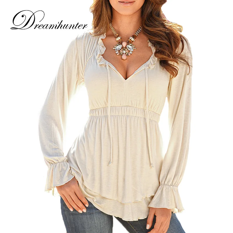 ZANZEA Летняя женская блузка с v-образным вырезом и длинными рукавами Осенняя рубашка женская элегантная для работы в офисе Blusas Mujer однотонная ...
