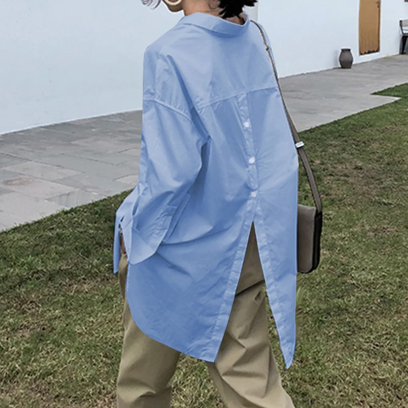 Модная женская Повседневная однотонная Асимметричные блузы, туника, рубашки с длинным рукавом и пуговицами, свободные офисные Блузы
