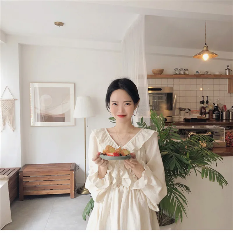 Новые модные кружевные рубашки женские, шифон с оборками с длинным рукавом v-образным вырезом Женская Осенняя хлопковая блуза с кисточками ...