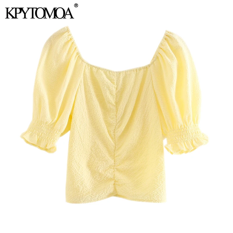 KPYTOMOA Женская мода 2020 Милая плиссированная укороченная блузка в винтажном стиле с квадратным воротником и рукавами-фонариками женские рубашки Blusas шикарные топы