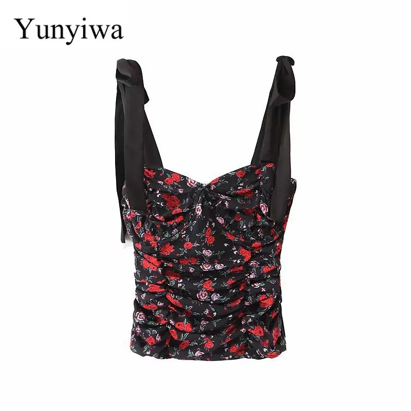 Новинка 2019, женский черный плиссированный топ с цветочным рисунком и галстуком-бабочкой, женские блузки, Сексуальные вечерние Рубашки, Топы, Одежда Blusas Mujer De Moda