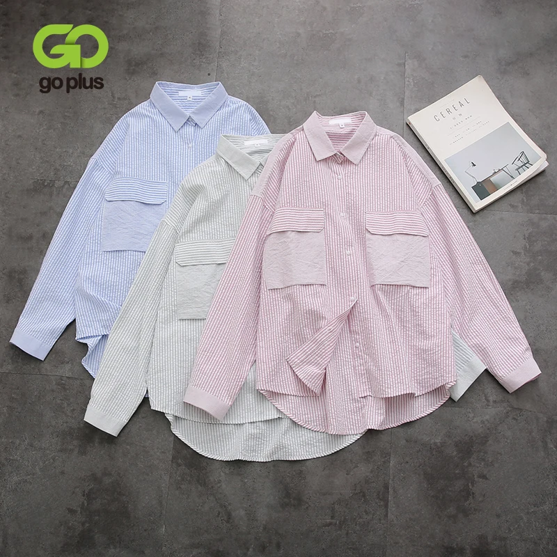 Gplus женская блузка в полоску с большими карманами, рубашка больших размеров, Женские топы и блузки Blusa Mujer Haut Femme Kleding Vrouwen C9680