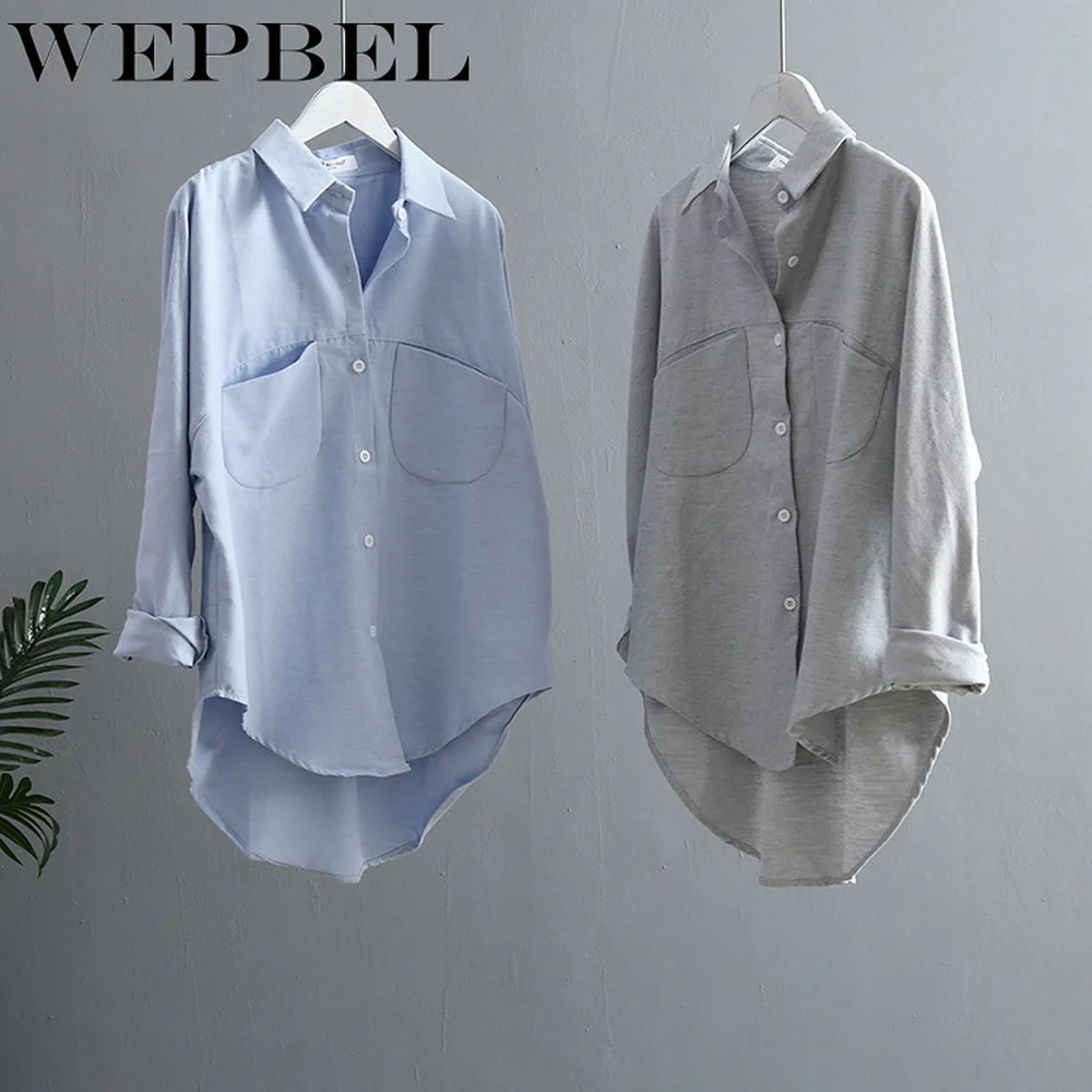 Женская винтажная блузка WEPBEL, весенне-летняя блузка с длинным рукавом и отложным воротником в Корейском стиле