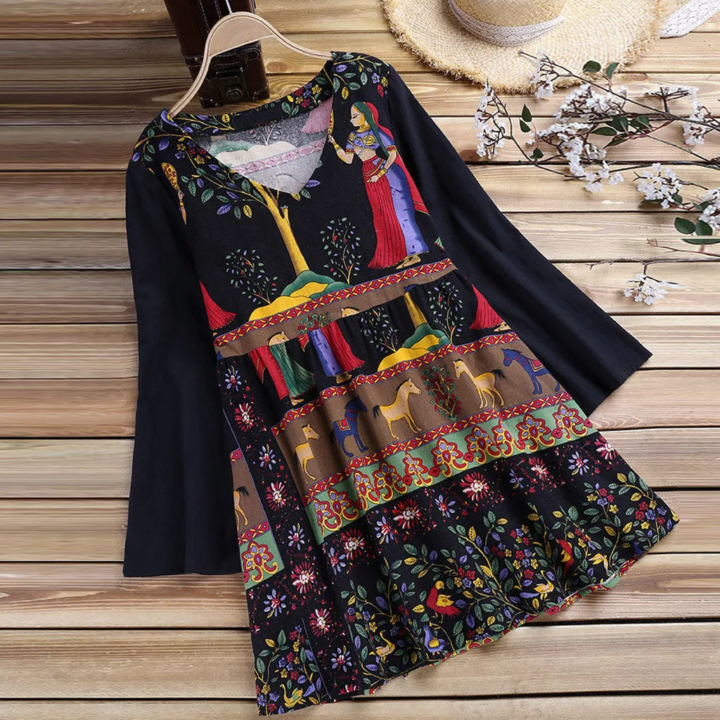 ZANZEA 2019 плюс Размеры Туника Топы Для женщин Винтаж печати белье блузка женская рубашка с длинными рукавами элегантные Повседневное вечерние...