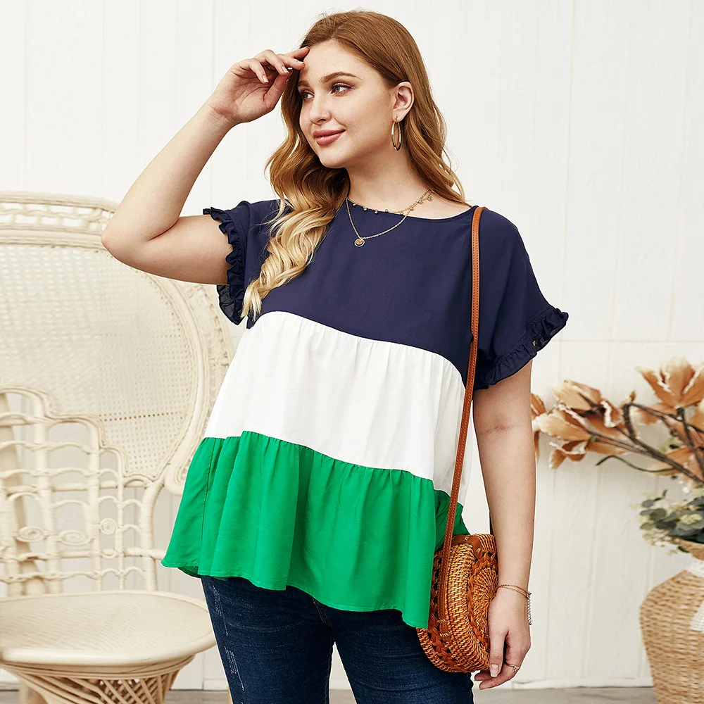 2020 модная женская летняя блуза с коротким рукавом контрастного цвета Бохо Большие размеры Свободная Женская туника свободного покроя топы